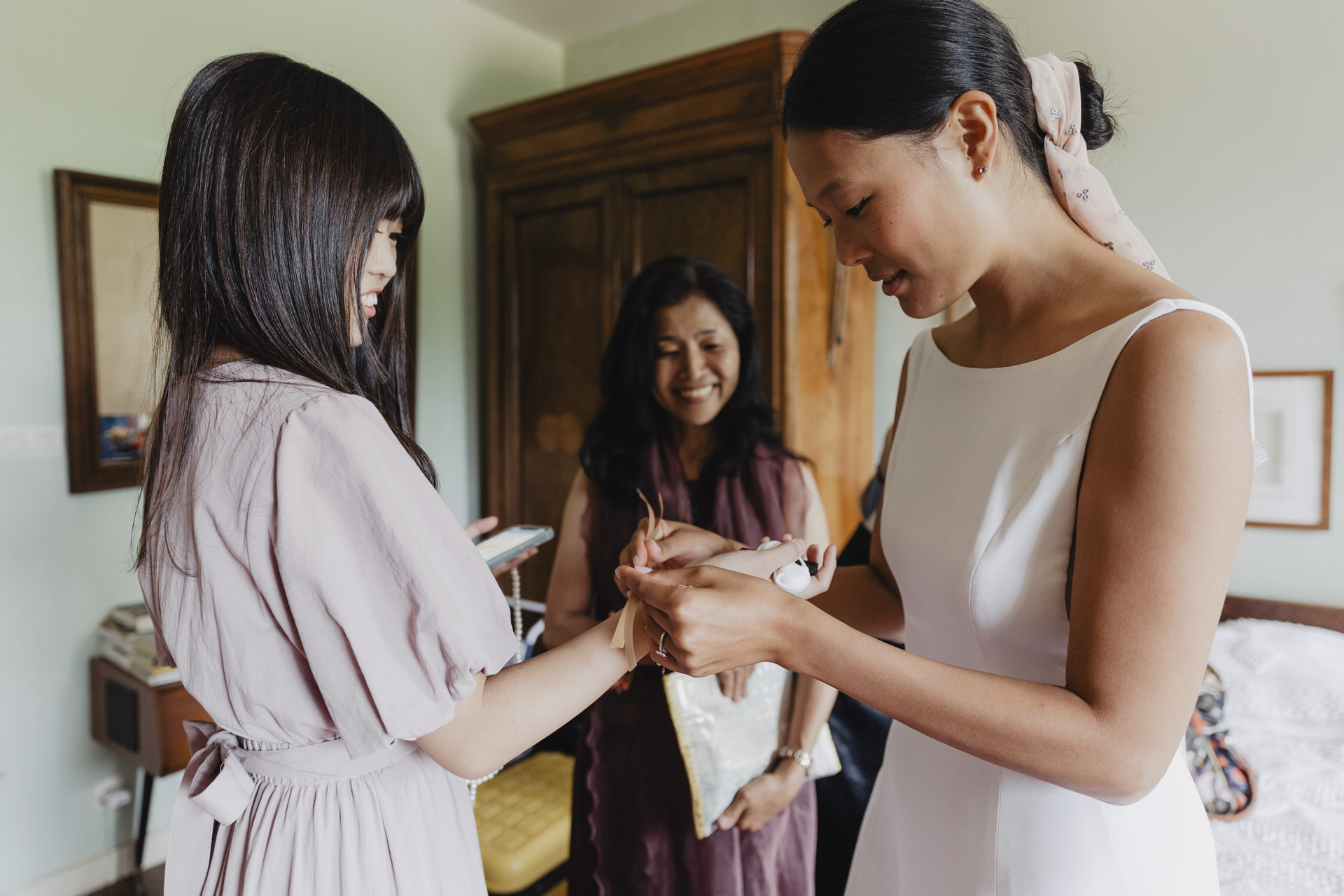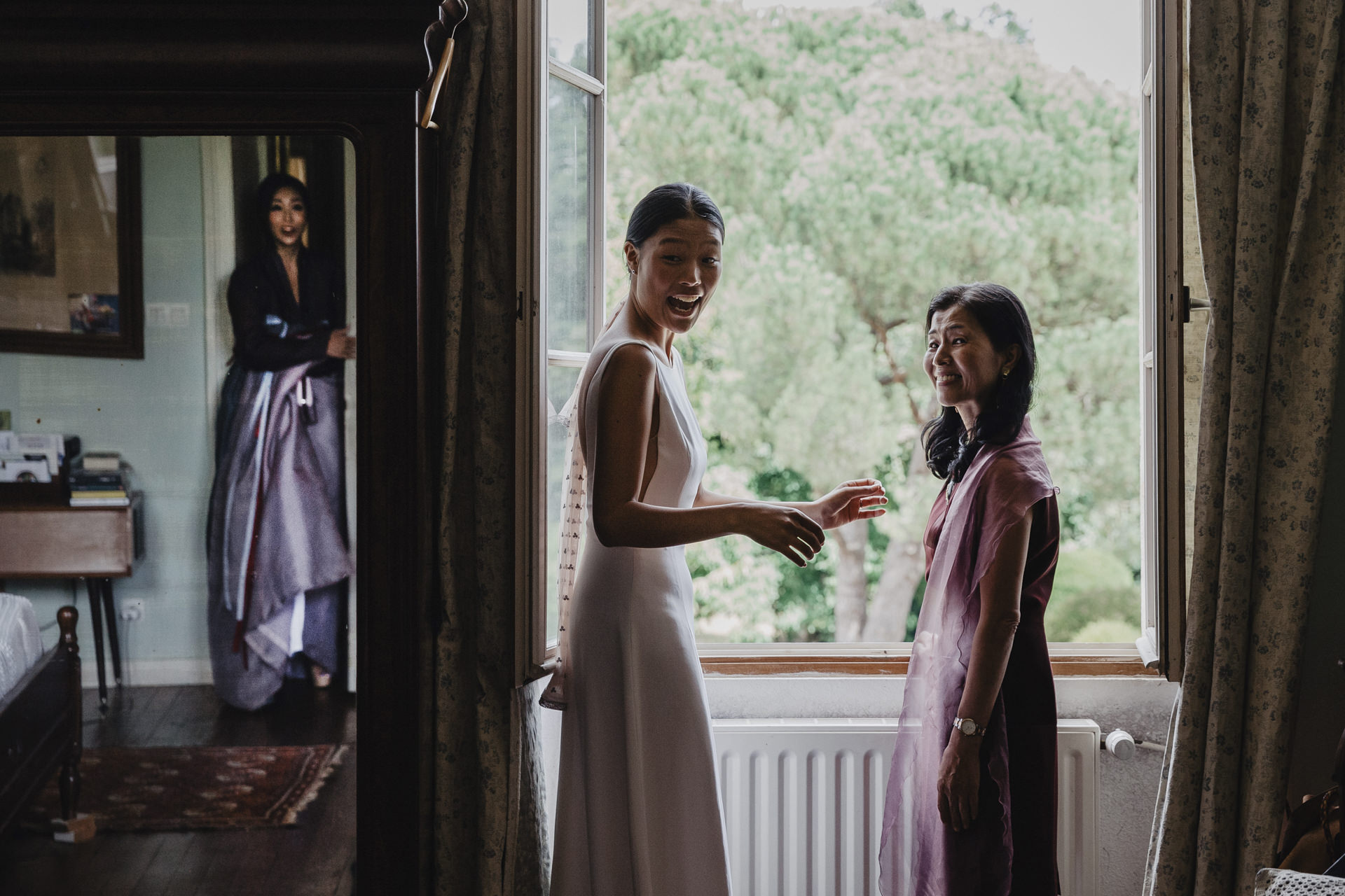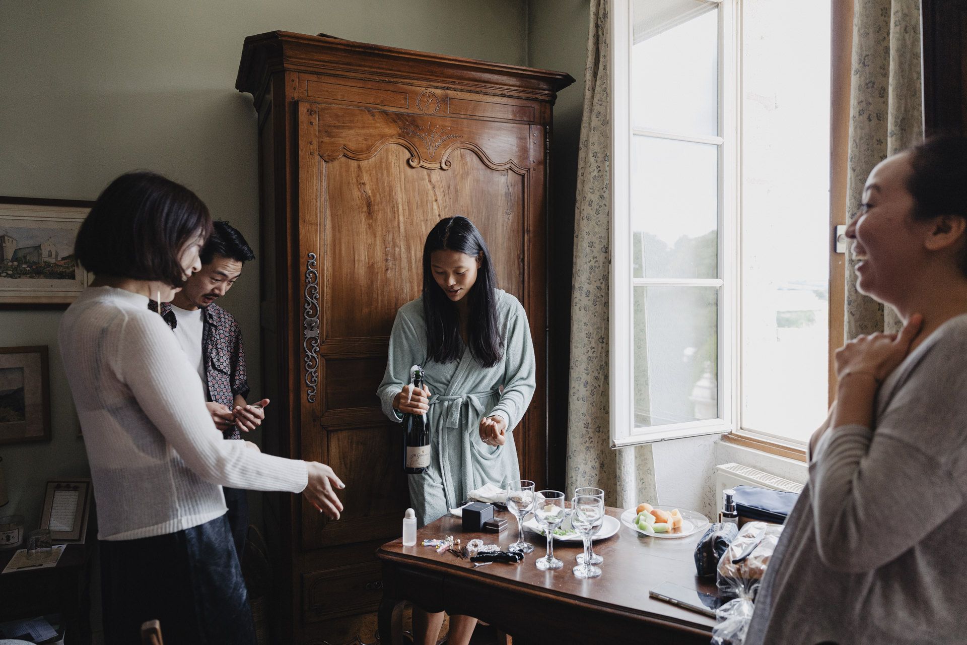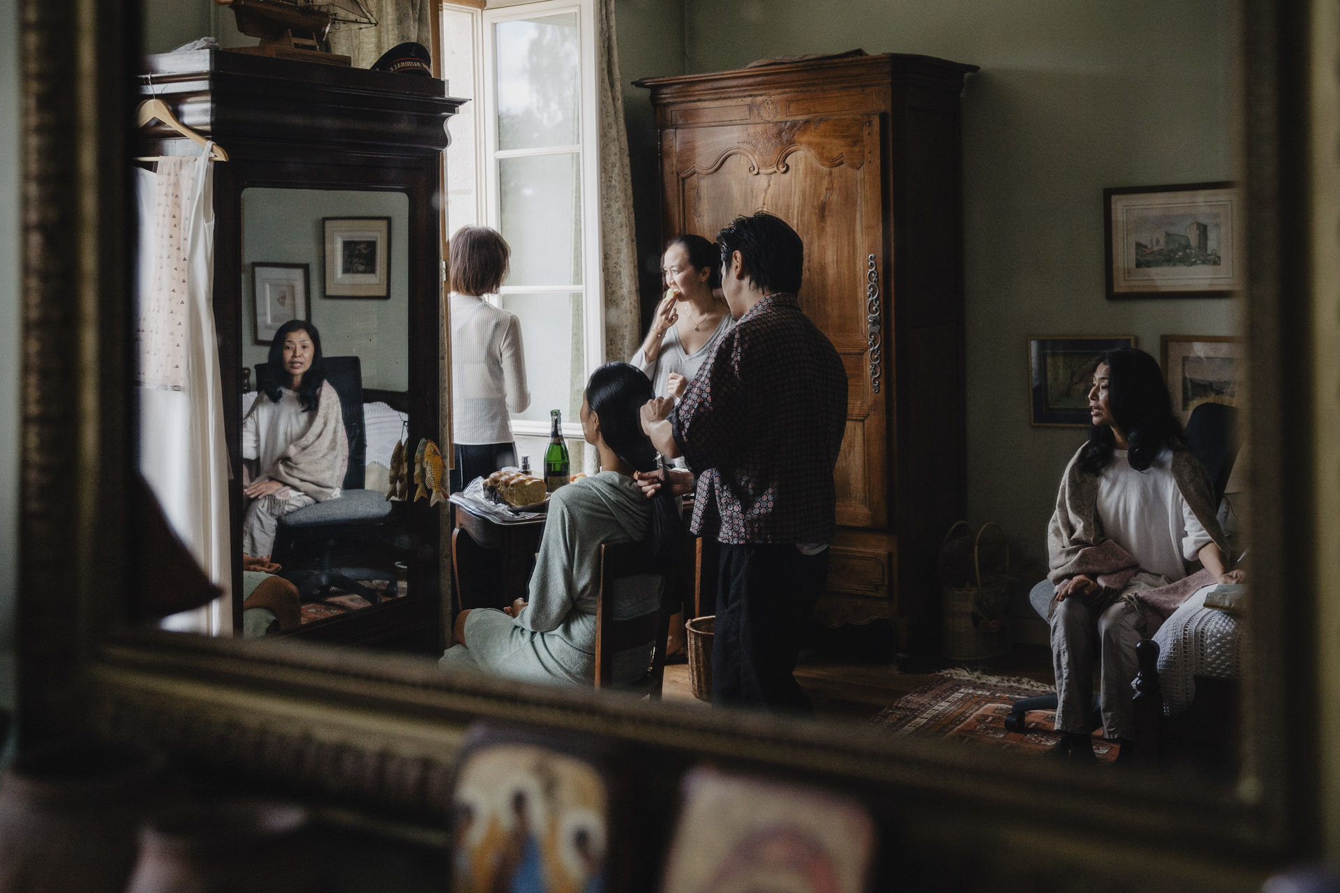Derrière ces volets verts olive, se prépare deux amoureux aux cultures différentes. Ce mariage m’a beaucoup touché, par son authenticité, et les émotions qui se sont dégagées tout au long de la journée. Ce mariage franco-asiatique est une célébration unique, fusionnant deux cultures riches en traditions et en symbolisme. Imaginez une journée où l’élégance occidentale rencontre la splendeur orientale, créant un mélange harmonieux de coutumes et de festivités.