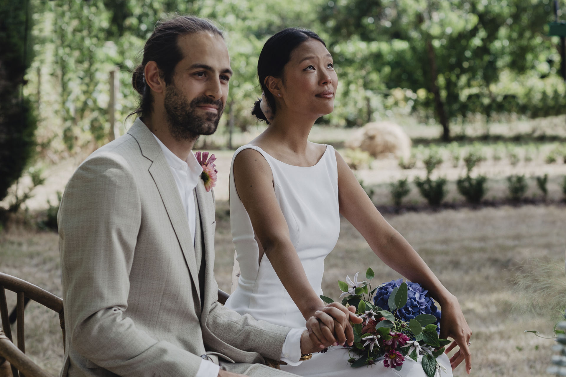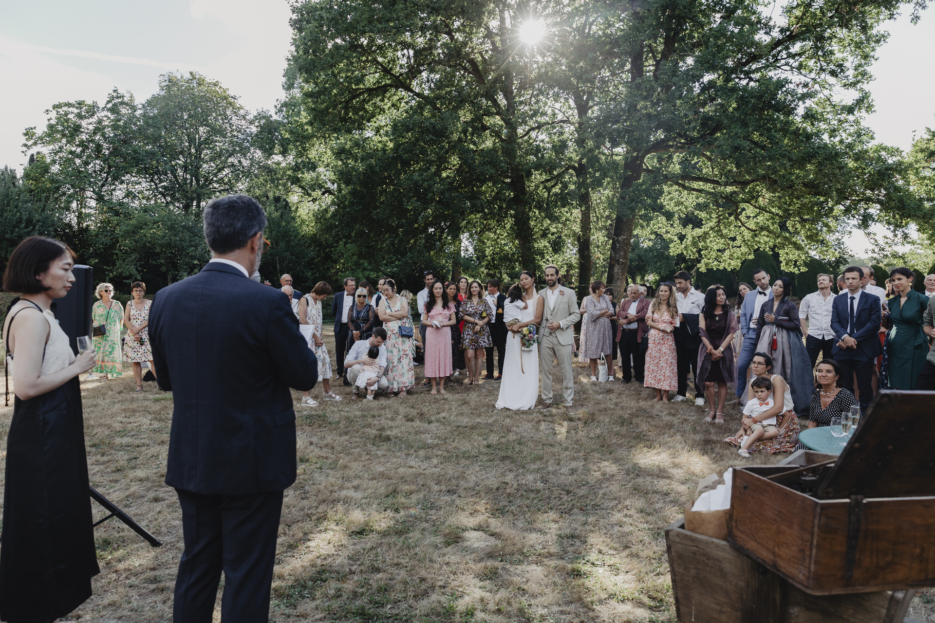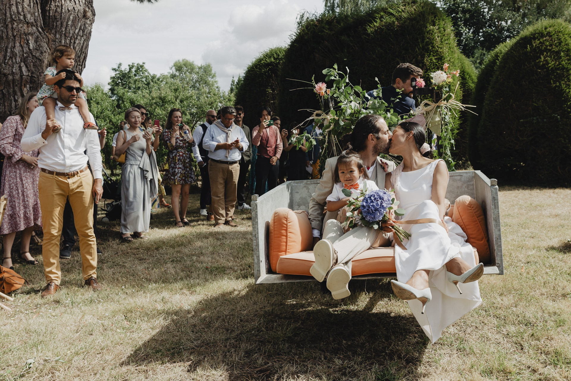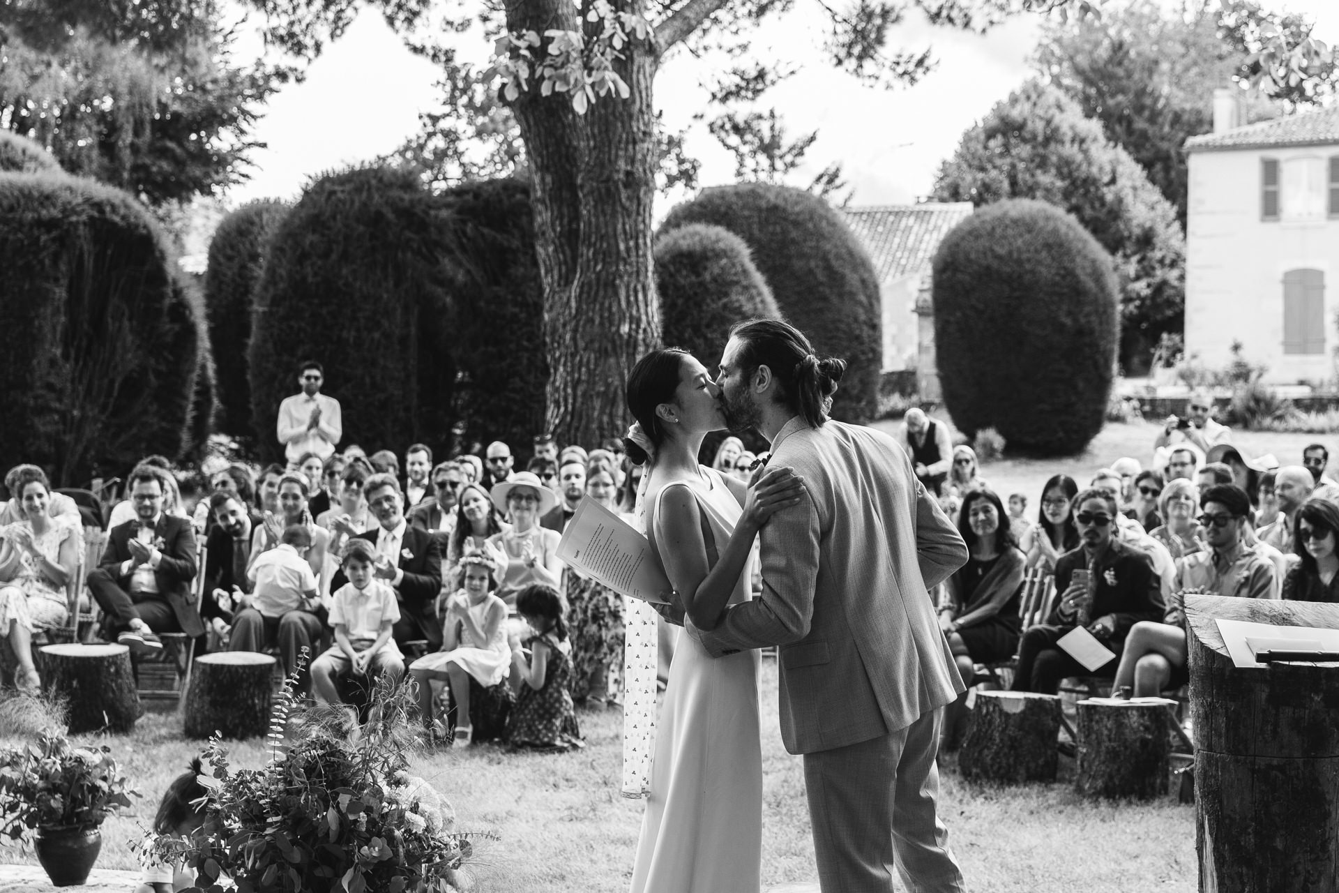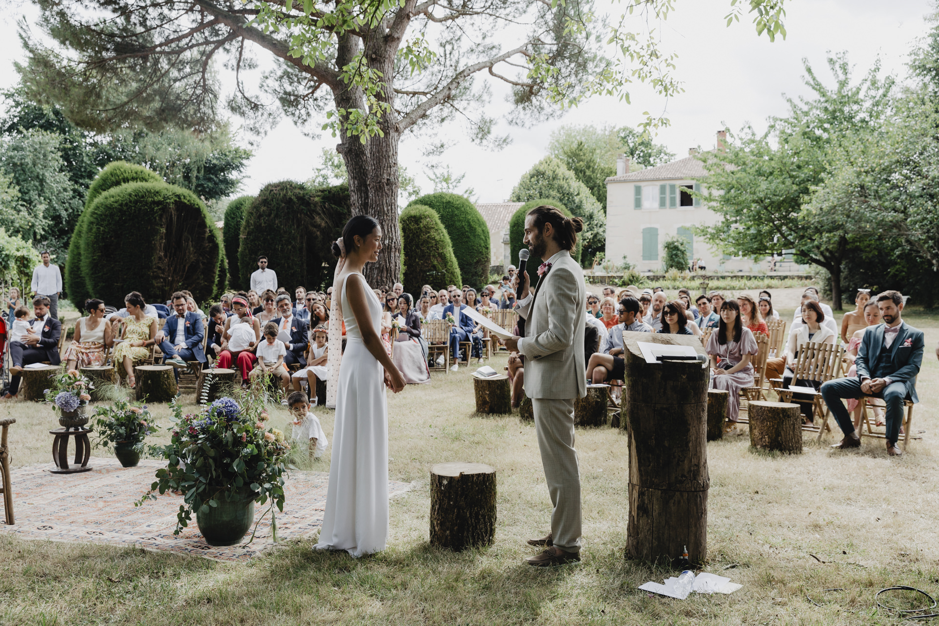 J’ai retrouvé ce couple du jour au sein du domaine familiale pour célébrer leur mariage en Vendée. Ils voulaient quelques choses de simple, sans chichi, ce qui leur ressemblait. Ce fut un événement intime et chaleureux, imprégné d’une ambiance personnelle et familiale. Imaginez une belle journée ensoleillée, où un jardin luxuriant devient le théâtre d’une cérémonie d’amour et de joie.