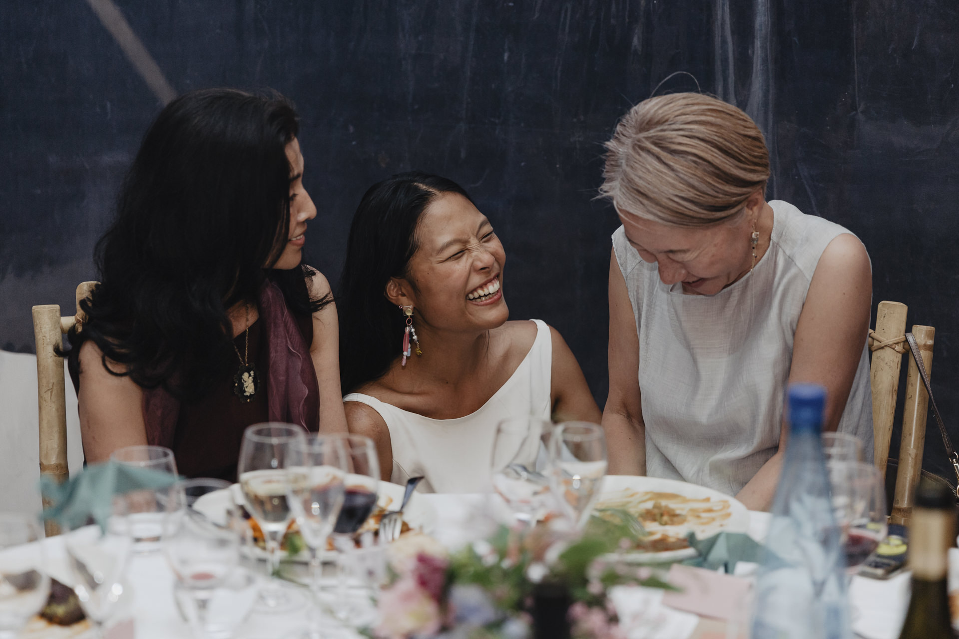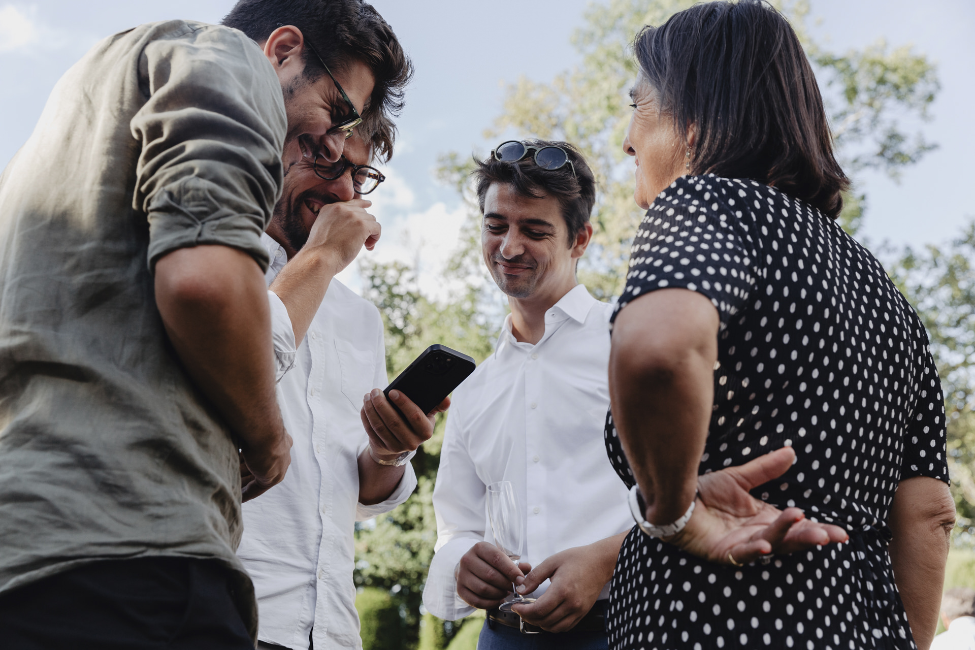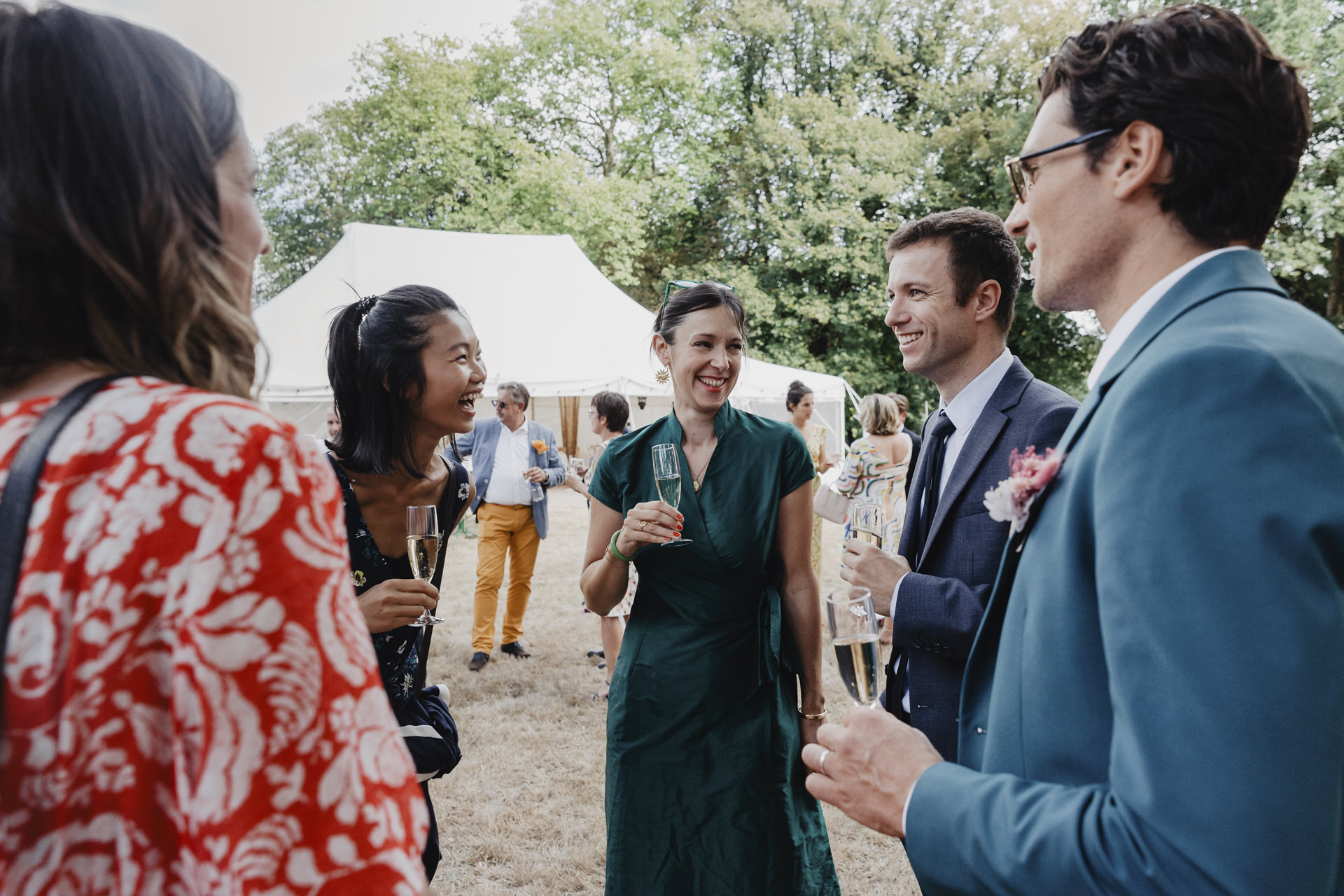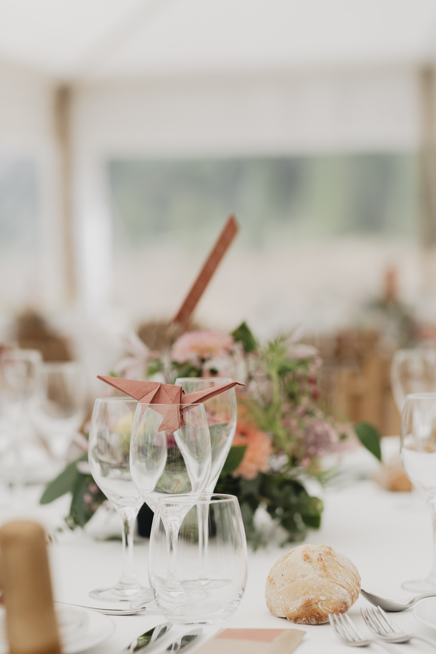 Après une fin d’après midi sous un soleil radieux, et un cocktail rempli de bonne humeur, nous nous dirigeons sous le chapiteau. Le repas offre une délicieuse sélection de plats gastronomiques et de délices culinaires. Les convives se régalent de mets exquis tout en échangeant des conversations joyeuses et en levant leurs verres pour célébrer le bonheur des nouveaux mariés.