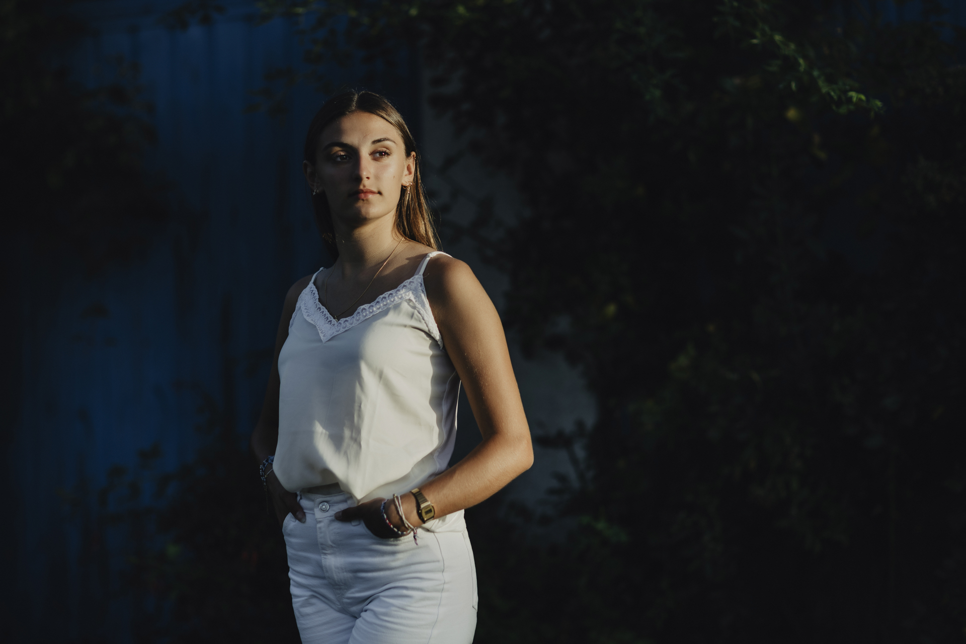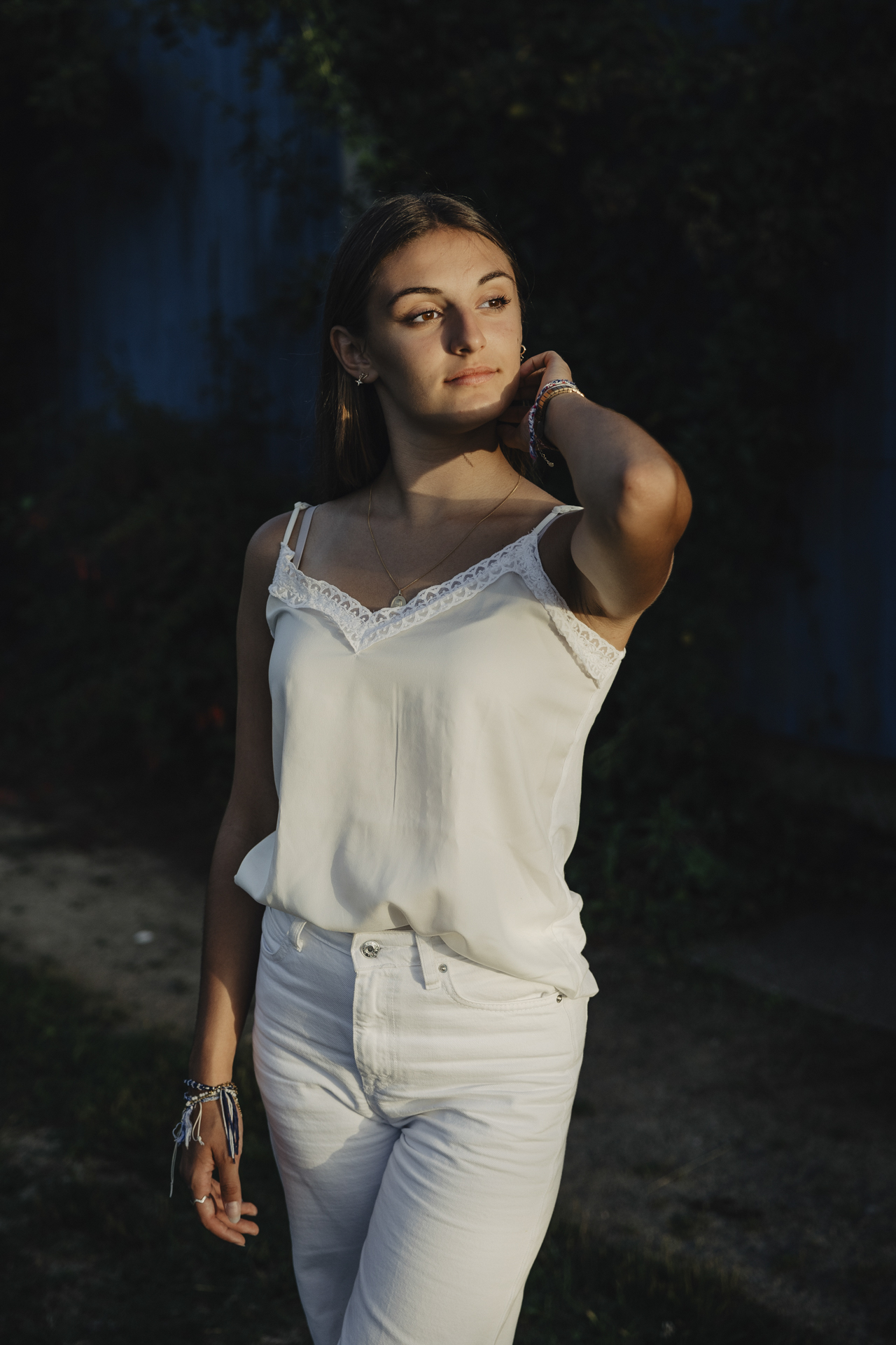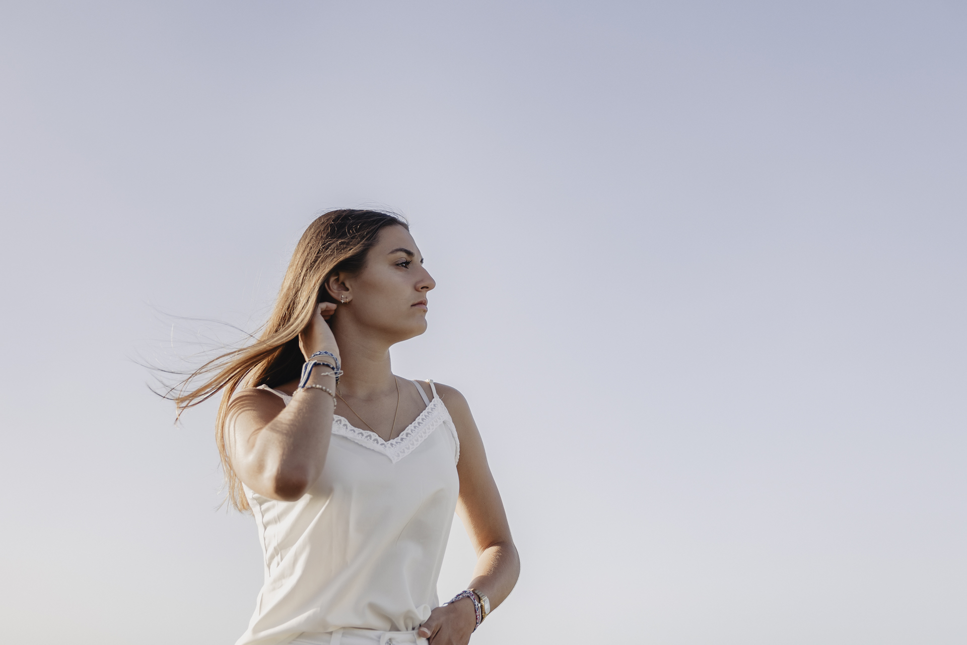 Pour ce shooting photos de portrait Nantes, nous avons fait le choix d’un full white. Une tenue entièrement blanche permet de faire ressortir la lumière estivale, d’accentuer les reflets dorés du soleil et de donner un rendu intemporel aux photos.